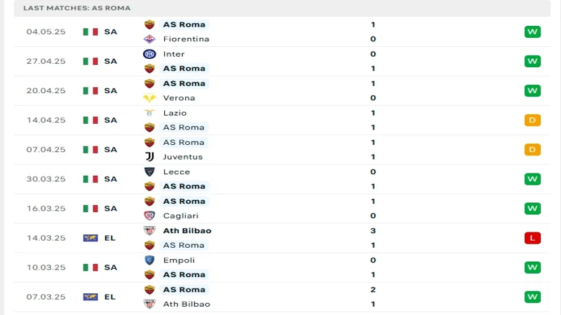 Roma cũng đang có phong độ ổn định, đặc biệt trong các trận đấu gần đây. Họ đã có một chuỗi bất bại kéo dài 7 trận, với 5 chiến thắng và 2 trận hòa. Đặc biệt, Roma đã giành chiến thắng 1-0 trước Fiorentina và Inter. Tuy nhiên, họ cũng gặp khó khăn khi để hòa Lazio và thua 1-2 trước Athletic Bilbao. Roma hiện đứng thứ 5 trên bảng xếp hạng Serie A, với 18 chiến thắng, 9 hòa và 8 thua.