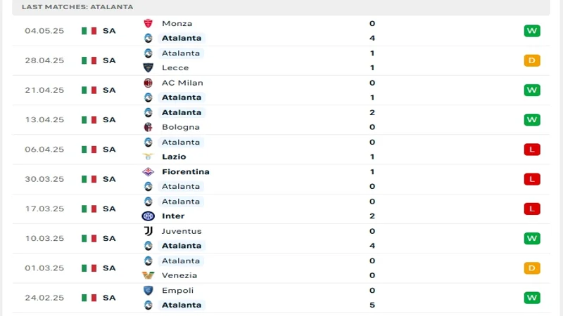 Phong độ Atalanta