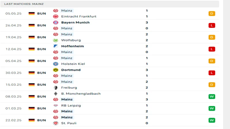 Ở chiều ngược lại, Mainz đang sở hữu hàng công hiệu quả hơn khá nhiều khi đã ghi được 49 bàn thắng sau 32 vòng. Hàng thủ của họ cũng chỉ thủng lưới 40 lần, một thành tích tương đối ổn định so với mặt bằng Bundesliga mùa này. Với phong độ hiện tại, Mainz đang rất cần điểm để giữ vững vị trí trong nhóm cạnh tranh suất dự cúp châu Âu mùa tới.