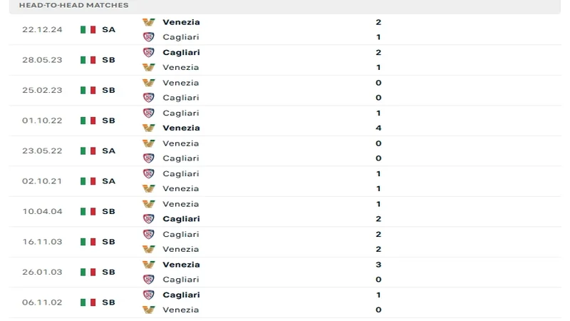 Tuy nhiên, với tinh thần quyết tâm và phong độ tốt hơn trong thời gian gần đây, Venezia sẽ là đội có khả năng giành chiến thắng. Ở trận lượt đi, Venezia đã giành chiến thắng 1-0 trước Cagliari, và trong lần tái đấu này, rất có thể kịch bản này sẽ tiếp tục lặp lại.