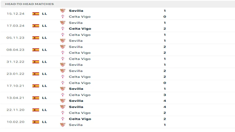 Lịch sử đối đầu của Celta Vigo vs Sevilla
