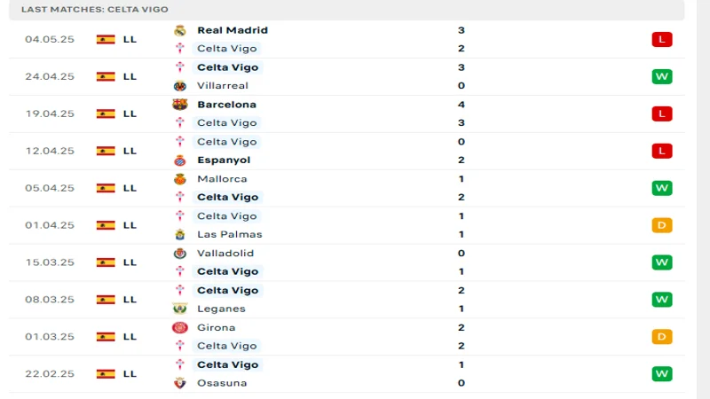 Đáng chú ý, hàng công của Celta Vigo đang thể hiện phong độ ghi bàn khá tốt trong giai đoạn gần đây. Trong 5 trận gần nhất, họ đều nổ súng – cho thấy sự hiệu quả trong những pha tổ chức tấn công lẫn khả năng tận dụng cơ hội trước khung thành đối phương. Sau 34 vòng đấu tại La Liga mùa giải năm nay, Celta Vigo đã ghi được 52 bàn thắng – đạt hiệu suất trung bình 1,53 bàn/trận. Đây là con số khá tích cực đối với một đội bóng đang cạnh tranh suất tham dự cúp châu Âu.