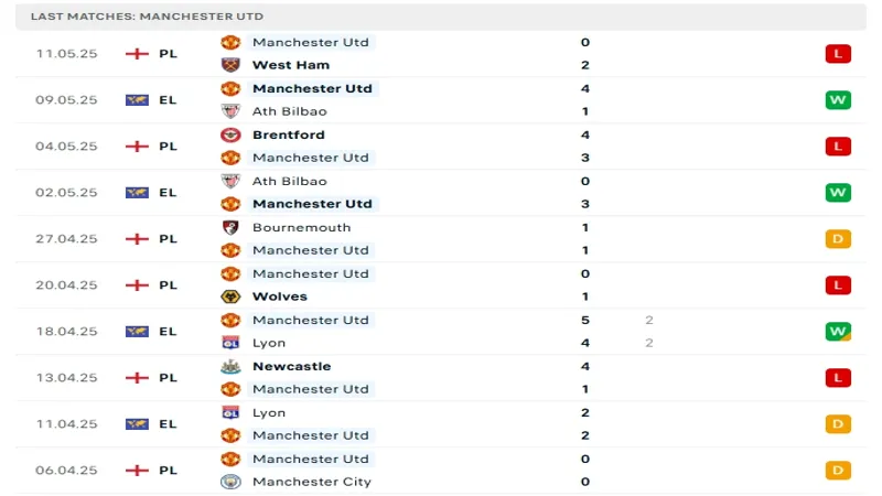 Ở chiều ngược lại, Manchester United đang có phong độ vô cùng kém cỏi tại Premier League. Trong trận đấu gần nhất, họ tiếp tục nhận thất bại trước West Ham, qua đó kéo dài chuỗi trận bết bát với 4 thất bại trong 5 vòng gần nhất. Sau 36 trận, MU chỉ có được 10 chiến thắng, 9 trận hòa và tới 17 thất bại, giành 39 điểm và đang xếp thứ 16 – một vị trí mà ít ai ngờ tới đầu mùa giải.