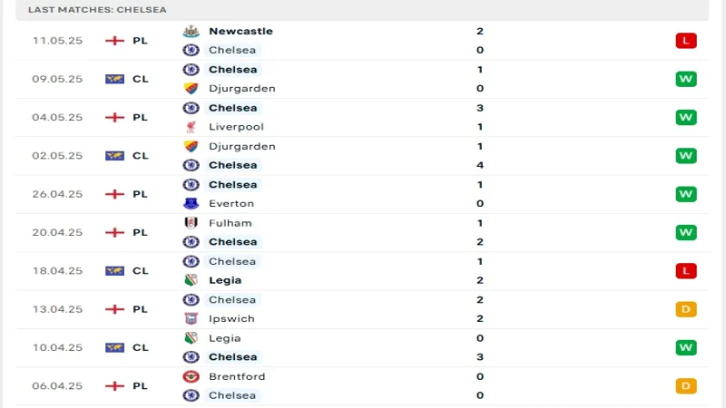 Ở trận đấu gần nhất, Chelsea đã phải nhận thất bại 0-2 trên sân của Newcastle, một trận thua khá thất vọng khi họ để đối thủ lấn lướt hoàn toàn. Trận thua này khiến Chelsea tụt xuống vị trí thứ 5 trên BXH với 63 điểm sau 36 vòng đấu. Họ có 18 chiến thắng, 9 trận hòa và 9 thất bại. Khoảng cách với top 4 chỉ là 2 điểm – một con số hoàn toàn có thể san lấp nếu họ giành chiến thắng ở 2 vòng đấu cuối.