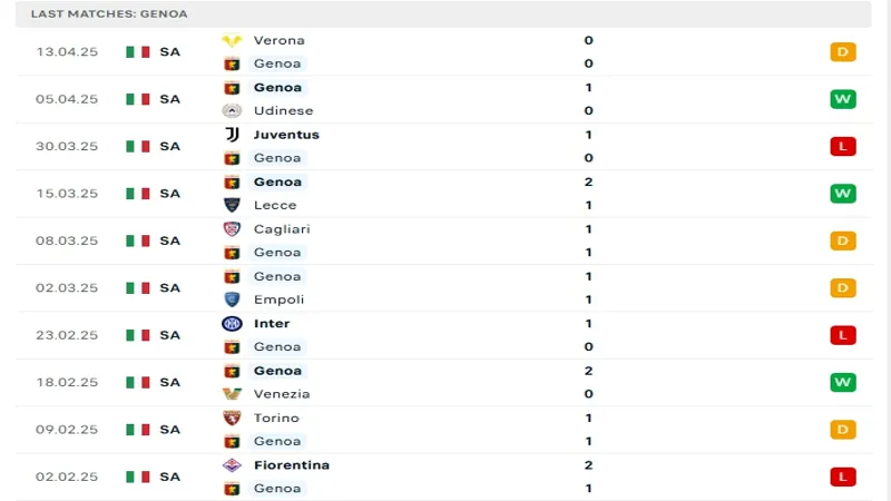 Về phần Genoa, đội bóng này có lối chơi tương tự khi ghi được 29 bàn thắng trong 33 trận đấu, một con số khá thấp nếu so với các đội khác trong giải đấu. Cùng với đó, Genoa cũng nhận đến 38 bàn thua, cho thấy rằng mặc dù họ có một hàng thủ ổn định nhưng vẫn dễ bị xuyên thủng trong các trận đấu quan trọng. Cũng giống như Como, trong 5 trận đấu gần nhất của mình, 4 trận của Genoa kết thúc với không quá 2 bàn thắng, phản ánh rõ phong cách thi đấu thiên về phòng ngự của đội bóng này.