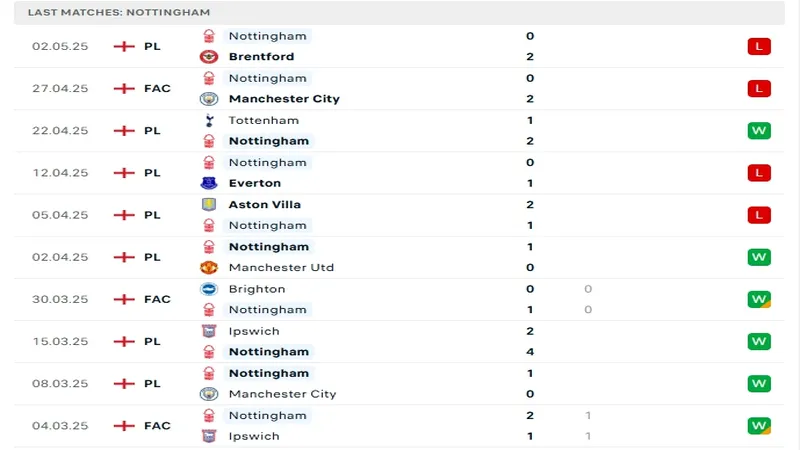 Phong độ gần đây của Nottingham Forest không được ổn định. Họ vừa nhận 2 thất bại liên tiếp, trong đó trận gần nhất thua trước Brentford. Tuy nhiên, khi thi đấu trên sân khách, Forest không hề tệ. Trong 17 lần xa nhà, họ giành được 9 chiến thắng, 2 hòa và chỉ nhận 6 thất bại – tỷ lệ tích lũy điểm sân khách khá tốt.