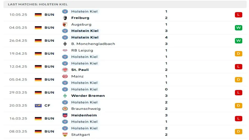 Trong khi đó, Holstein Kiel đang trải qua một mùa giải tồi tệ khi đã chắc chắn phải xuống hạng. Trận đấu gần nhất, họ tiếp tục nhận thêm một thất bại 1-2 trước Freiburg, nâng tổng số trận thua lên con số 20 sau 33 vòng đấu.