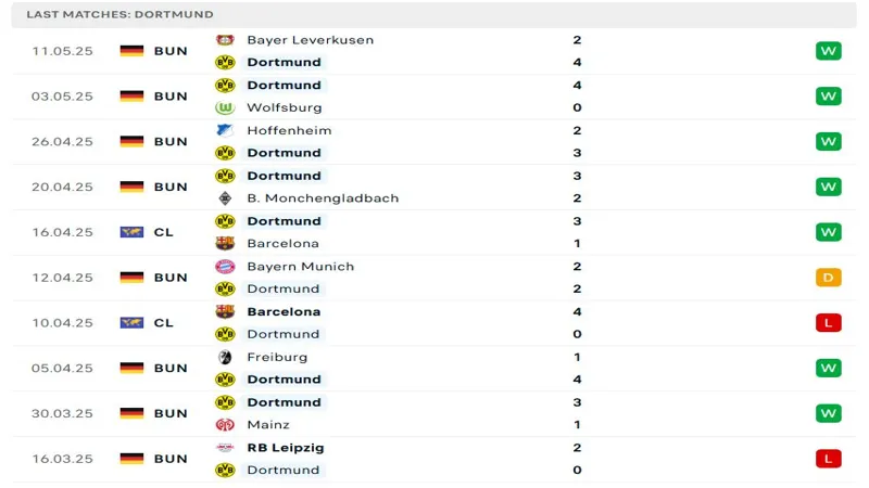 Về mặt phong độ ghi bàn hiện tại, Dortmund sau 33 vòng đấu đã ghi được 68 bàn thắng – một con số cho thấy hàng công của họ vẫn duy trì được sự sắc bén và hiệu quả. Tuy nhiên, hàng thủ của họ lại để thủng lưới tới 51 lần, cho thấy khả năng phòng ngự vẫn là một vấn đề đáng lo ngại, đặc biệt trong những trận cầu mở. Trong 9 trận đấu gần nhất của Dortmund, tất cả đều khép lại với từ 3 bàn thắng trở lên, Vua88 apk khẳng định xu hướng thi đấu cởi mở, thiên về tấn công và không ngại nhận bàn thua.