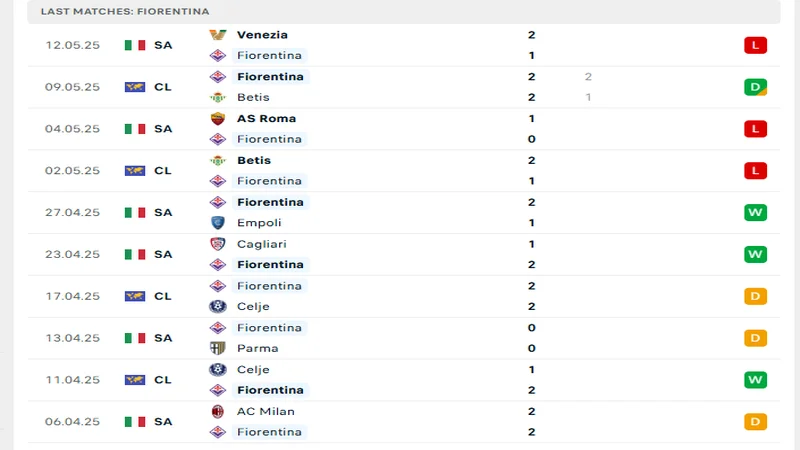 Fiorentina vừa phải nhận một thất bại đáng thất vọng 2-1 trước Venezia trong trận đấu gần nhất, đây là thất bại thứ 3 trong 4 trận gần nhất của họ. Mặc dù họ đã có một chiến thắng ấn tượng trước các đội mạnh trước đó, nhưng nhìn chung, phong độ của Fiorentina trong thời gian gần đây là khá tệ. Trong khuôn khổ đấu trường cúp C3, Fiorentina cũng đã dừng bước ở bán kết sau khi để thua Betis, theo Vua88 điều này càng khiến tinh thần của họ suy giảm nghiêm trọng.