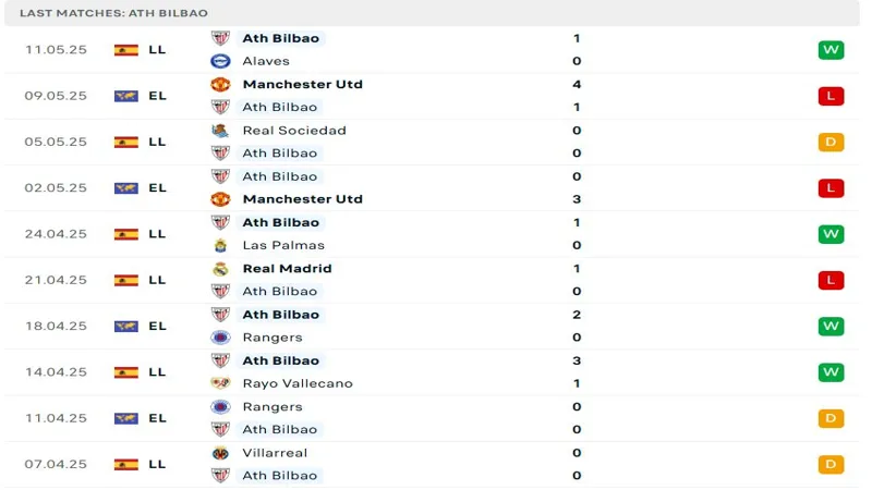 Phong độ gần đây Getafe vs Athletic Bilbao