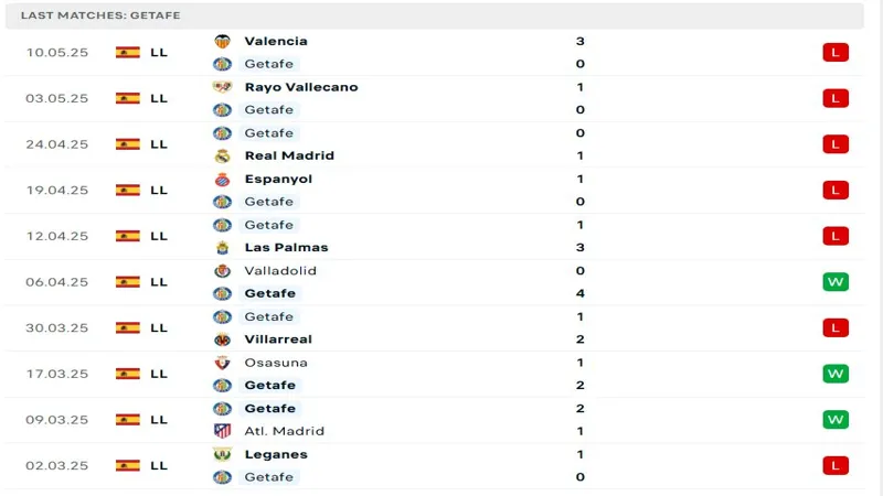 Trận thua 0-3 trước Valencia ở vòng đấu gần nhất đã đánh dấu thất bại thứ 5 liên tiếp của Getafe – chuỗi phong độ tệ hại cho thấy đội bóng này đang có dấu hiệu buông xuôi trong giai đoạn cuối mùa. Hiện tại, Getafe đang đứng ở vị trí thứ 13 trên bảng xếp hạng với 39 điểm sau 35 lượt trận, có được 10 chiến thắng, 9 trận hòa và 16 thất bại.