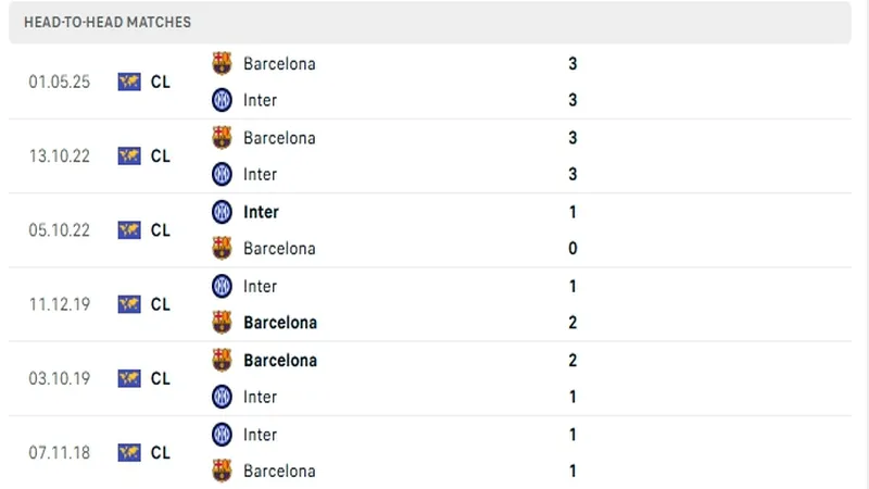 Trong những lần làm khách trước Inter Milan, Barcelona thường gặp khó khăn do sức ép từ khán đài sân Giuseppe Meazza và lối đá kỷ luật của đại diện Serie A. Tuy nhiên, với phong độ đang đạt đỉnh và sự thăng hoa của hàng công, Barca có đủ khả năng phá vỡ “dớp” này để giành vé vào chung kết. Chiến thắng tại lượt đi là động lực lớn để Barcelona hướng đến thêm một lần đánh bại Inter ngay trên sân khách.