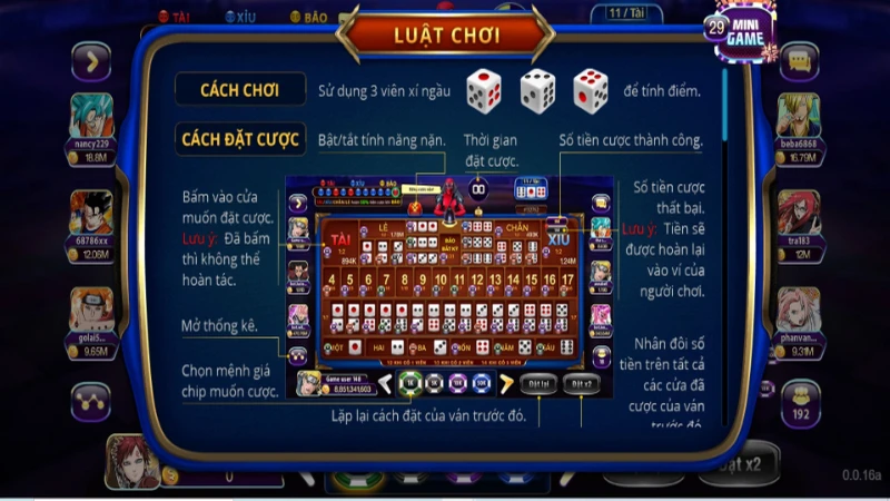 Cách chơi đơn giản, nhưng để chiến thắng không chỉ cần may mắn mà còn cần phải có chiến lược và kinh nghiệm. Người chơi có thể đặt cược số tiền theo ý muốn và sau đó chỉ cần chờ đợi kết quả sau khi xúc xắc được lắc. Nếu kết quả phù hợp với cược của bạn, bạn sẽ thắng và nhận được phần thưởng tương ứng.