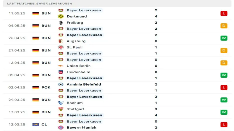 Phong độ Bayer Leverkusen