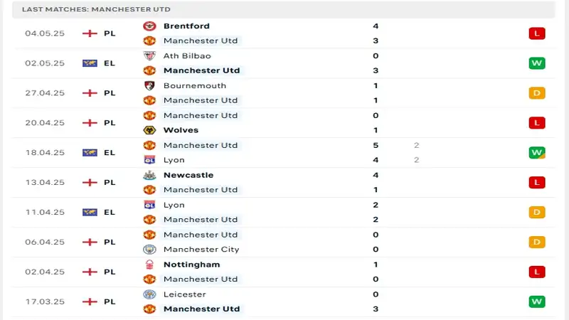 Phong độ gần đây Manchester United vs West Ham United