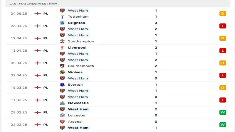 Phong độ West Ham United
