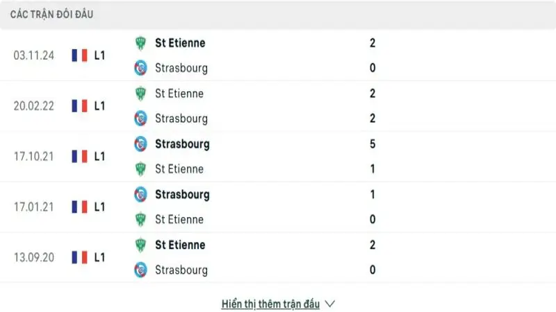 Trong 5 lần RC Strasbourg vs Saint Etienne gặp nhau gần nhất, Strasbourg đã có được 3 chiến thắng, trong khi Saint Etienne chỉ giành 1 chiến thắng và 1 trận hòa. Điều này cho thấy Strasbourg có thành tích vượt trội hơn trong những cuộc đối đầu giữa hai đội.