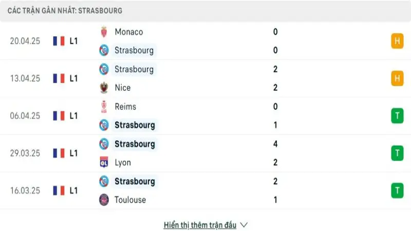 Thống kê phong độ gần đây RC Strasbourg vs Saint Etienne