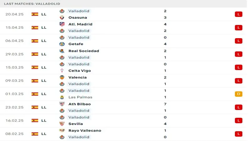 Ngược lại, Valladolid đã chính thức xuống hạng và hiện đang đứng ở vị trí cuối bảng với chỉ 16 điểm sau 32 trận đấu, khi chỉ giành được 4 chiến thắng, 4 hòa và 24 thất bại. Trong 5 trận gần nhất, đội khách chỉ có 1 chiến thắng và 4 thất bại. Lối chơi của Valladolid hiện tại rất yếu kém, đặc biệt là khi thi đấu trên sân khách, họ đã thua tất cả 5 trận gần nhất.