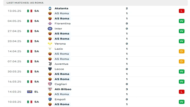 Roma, sau thất bại 1-2 trước Atalanta trong trận đấu gần nhất, đã chấm dứt chuỗi 7 trận bất bại liên tiếp. Tuy nhiên, đội bóng này vẫn có một mùa giải khá ổn định, với 18 chiến thắng, 9 hòa và 9 thất bại sau 36 vòng đấu. Với 63 điểm, Roma hiện đứng ở vị trí thứ 6 trên bảng xếp hạng và chỉ kém Juventus, đội xếp thứ 4, đúng 1 điểm.