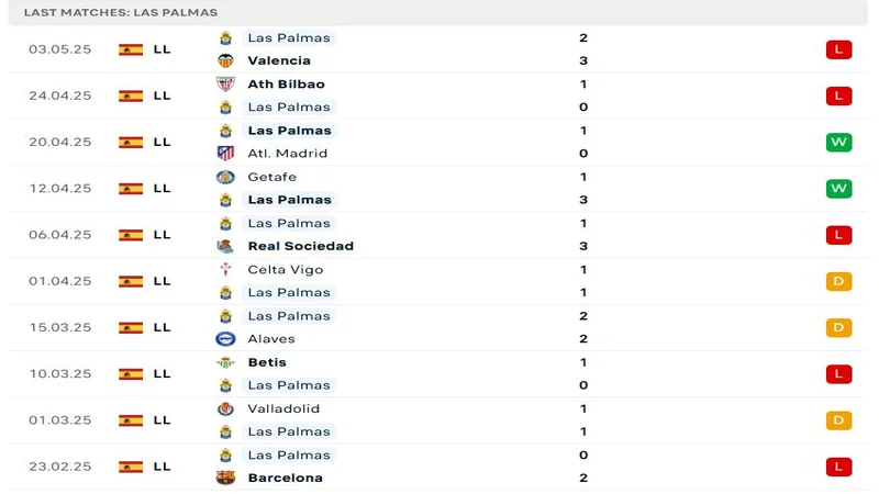 Thống kê cho thấy, trong 5 lần gần nhất tiếp đón Las Palmas, có tới 4 trận kết thúc với không quá 2 pha lập công. Những con số đó phản ánh rõ một điều: đây là cặp đấu thường diễn ra với thế trận chặt chẽ và có phần bế tắc.