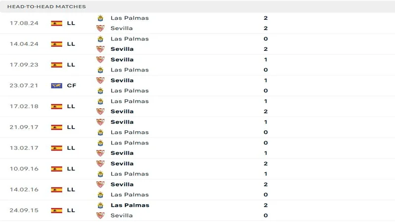 Lịch sử đối đầu của Sevilla vs Las Palmas