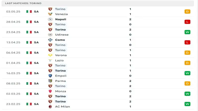 Phong độ gần đây của Torino không thật sự ấn tượng. Ở vòng đấu gần nhất, họ để Venezia – một đội bóng được đánh giá yếu hơn – cầm hòa với tỷ số 1-1. Nhìn rộng hơn, trong 6 trận gần nhất, Torino chỉ giành được đúng 1 chiến thắng, còn lại là 3 trận hòa và 2 thất bại.