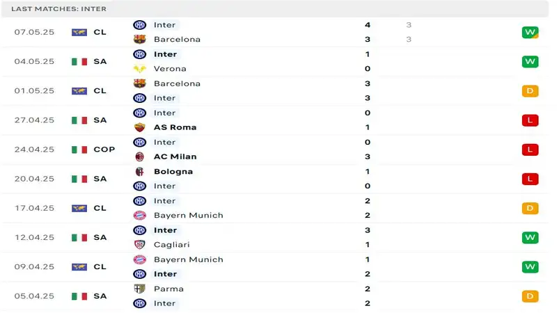 Về phong độ hiện tại, Inter Milan đang cho thấy sự ổn định và bản lĩnh của một đội bóng hàng đầu. Họ vừa loại Barcelona để giành vé vào chung kết Champions League và toàn thắng 2 vòng đấu gần nhất tại Serie A. Trong 10 trận gần nhất trên mọi đấu trường, Inter thắng 4, hòa 3 và chỉ thua 3, trong đó đáng chú ý là trận thắng Barca 4-3 kịch tính mới đây.