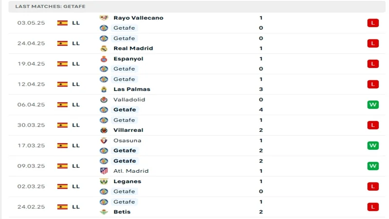 Cụ thể, 3 trong 5 trận gần nhất của họ kết thúc với không quá 2 bàn, và kịch bản tương tự cũng xảy ra ở 3 trong 5 trận sân khách vừa qua. Điều này cho thấy khi xa nhà, Getafe càng chơi thận trọng hơn, chủ yếu tập trung giữ vững hệ thống phòng ngự và tìm kiếm cơ hội từ những pha bóng cố định hoặc phản công nhanh.