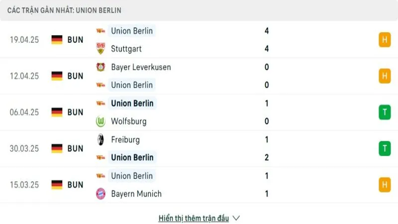 Phong độ gần đây của Union Berlin rất tích cực, với chuỗi 6 trận bất bại, trong đó có 3 chiến thắng và 3 trận hòa. Những kết quả này cho thấy sự cải thiện mạnh mẽ của đội bóng dưới sự dẫn dắt của huấn luyện viên Urs Fischer, đồng thời củng cố hy vọng trụ hạng của họ trong phần còn lại của mùa giải.