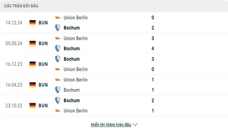 Thành tích đối đầu của VfL Bochum vs Union Berlin