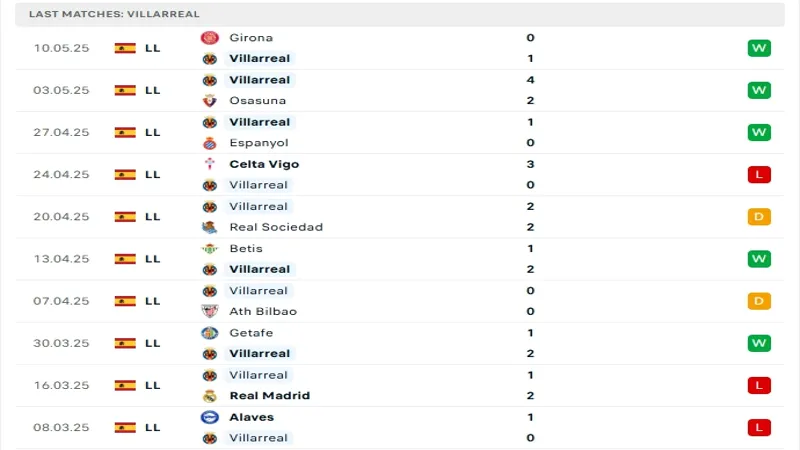 Villarreal bước vào trận đấu này với sự tự tin rất lớn khi vừa giành chiến thắng tối thiểu 1-0 trước Girona ở vòng đấu gần nhất. Đó cũng là chiến thắng thứ 3 liên tiếp của họ, nối dài chuỗi phong độ ổn định trong giai đoạn then chốt của mùa giải.